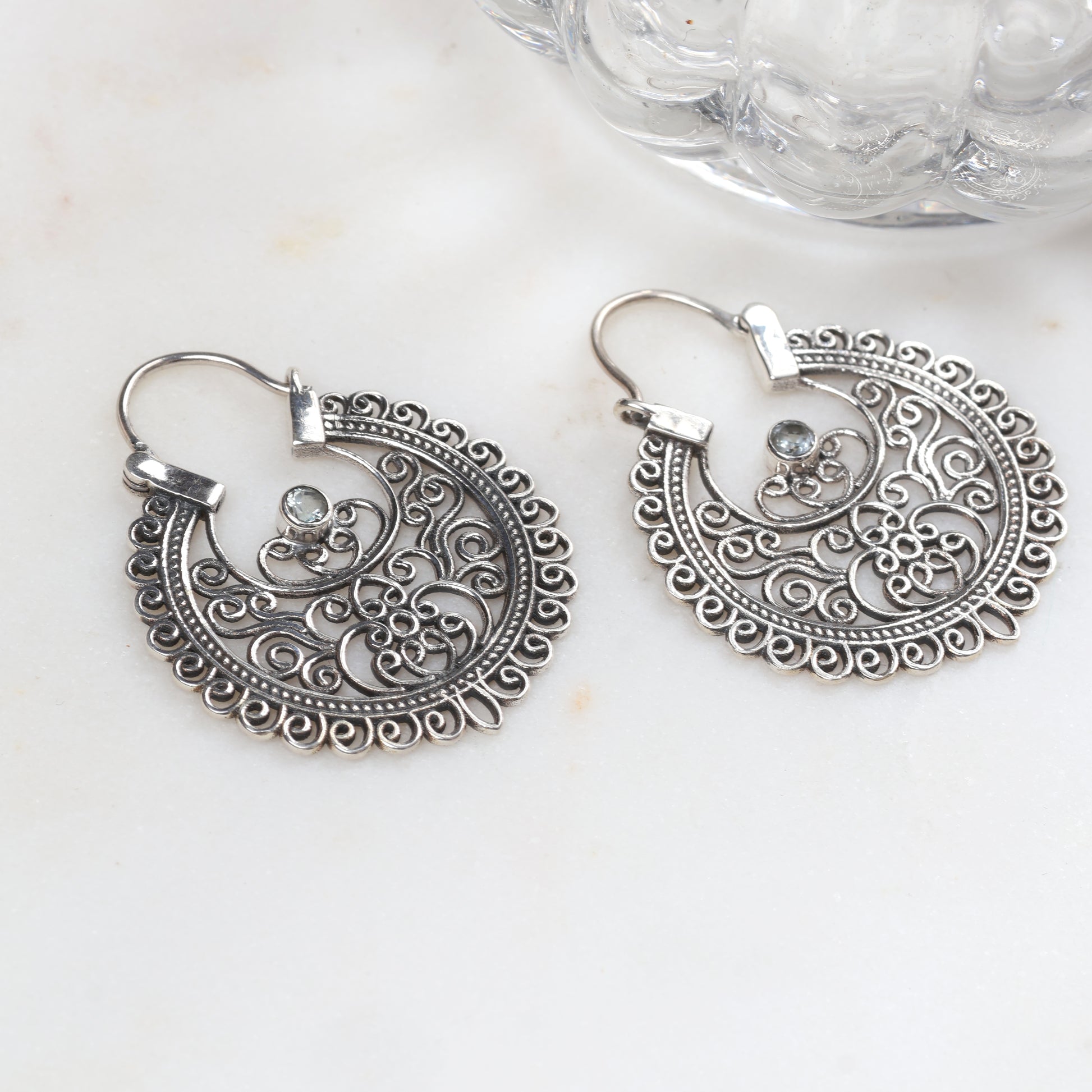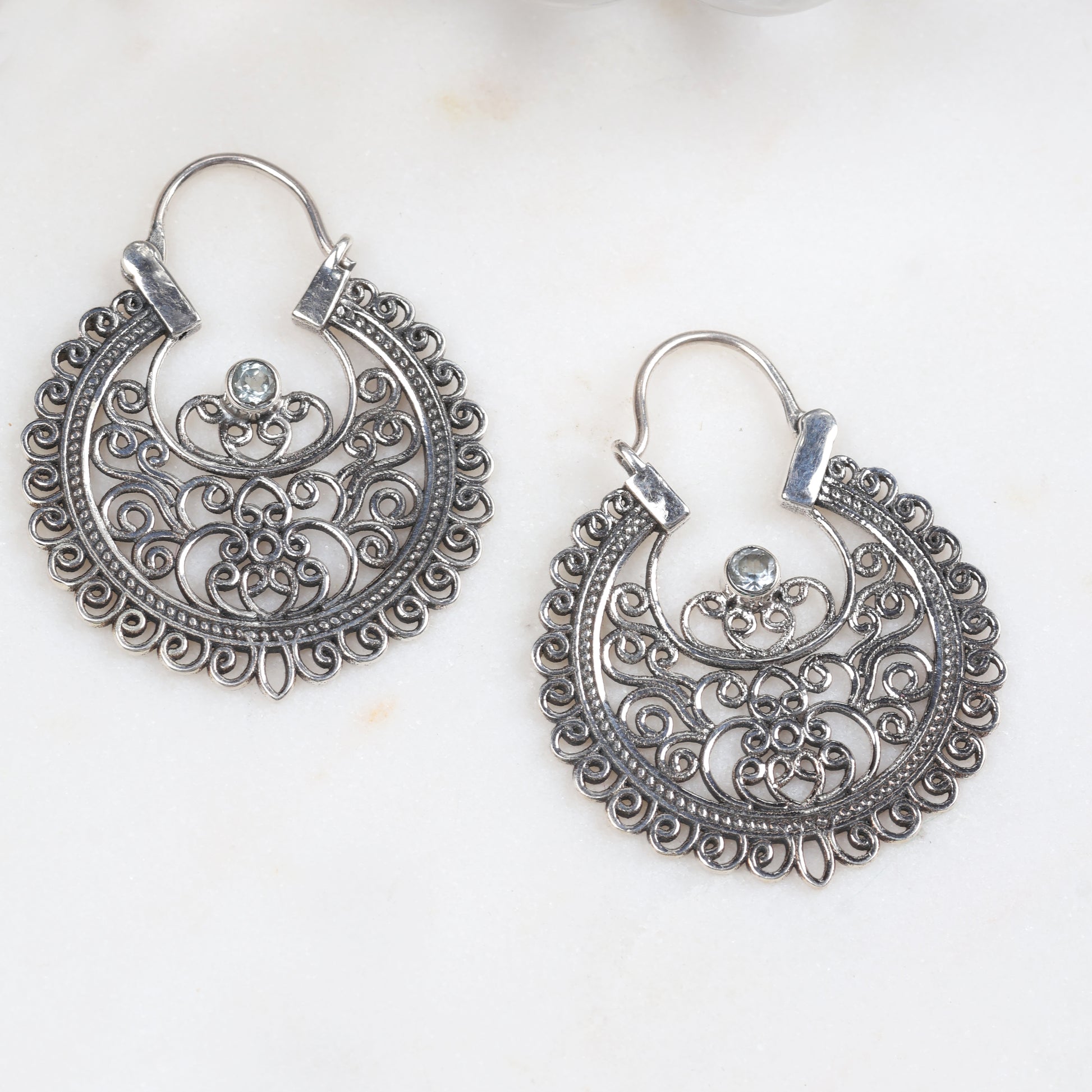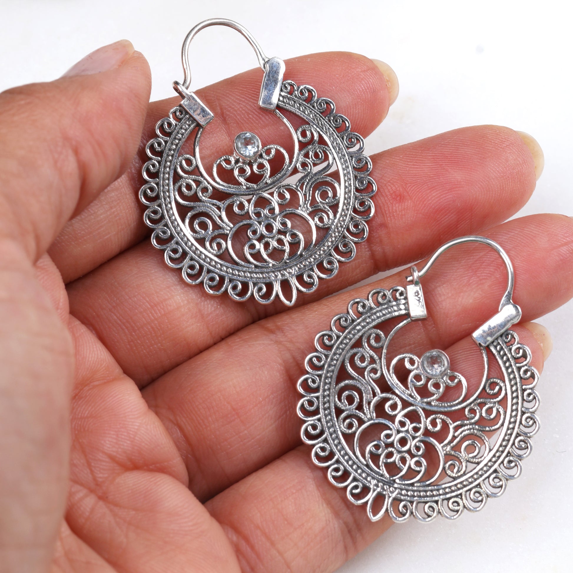 Meet the Isha Baali – your new favorite way to sparkle! These stunning silver earrings showcase delicate filigree artistry that dances with light, bringing out your inner radiance. Each intricate detail is crafted to perfection, creating an effortlessly feminine look that works whether you're heading to brunch or a night out. The lightweight design means you can wear them all day without a second thought. Elevate your jewelry game with these beautifully detailed baalis that prove good things really do come in small packages.